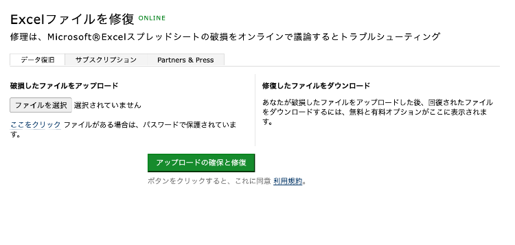 オンライン修復ツール「OfficeRecovery」を使えば、簡単に修復が可能です。簡単な修復であれば、オンラインツールでサクッと完了させましょう。使い方は非常に簡単です。ファイルをアップロードし、修復ボタンをクリックするだけ。修復が完了したら、あとはダウンロードすれば完了です。