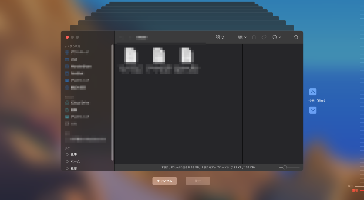 バックアップファイルを作成している場合は、復元がおすすめです。Time Machineなどのバックアップソフトウェアを使用して、削除された写真を復元しましょう。過去の特定の日付まで、パソコンの状態を戻し、データを復元できます。